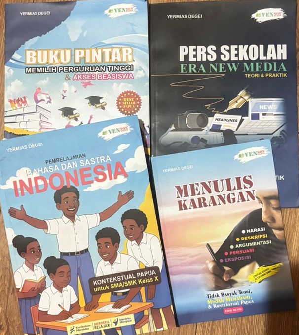 Yermias juga memberikan apresiasi kepada Penerbit Venson Papua yang telah menerbitkan buku-bukunya, mulai dari mengedit, mengurus ISBN di Perpustakaan Nasional sebagai buku kontekstual serta tengah mengurus penerapannya secara resmi di tanah Papua (khusus untuk Buku Teks) kepada Badan Standar Kurikulum dan Assesmen Pendidikan (BSKP) Jakarta sehingga segera akan memperluas pemanfaatannya di berbagai sekolah di Papua Tengah dan Papua umumnya, baik di tingkat SMA maupun SMK.***